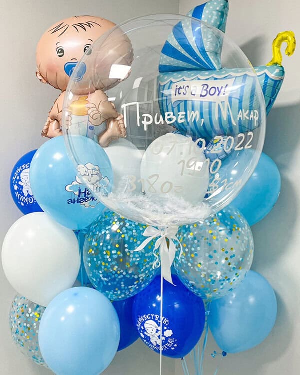 Шар с перьями и индивидуальной надписью